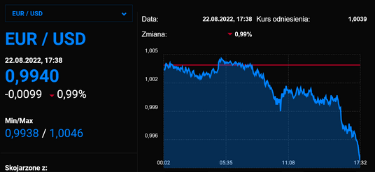 Umacniający się dolar sprawił, że parytet po raz kolejny został został przełamany. W efekcie amerykańska waluta jest minimalnie więcej warta od euro.