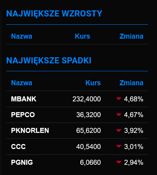 Indeksy w Warszawie pogłębiają spadki, będąc coraz bliżej tegorocznych dołków. WIG20 jest już ponad 2,3 proc. na minusie, a akcje wszystkich spółek z indeksu notowane są pod kreską. Spadkom przewodzą walory Pepco zniżkując o prawie 5 proc. Na celowniku sprzedających są także papiery PKN Orlen i banków, co przekłada się na przecenę rzędu 3-4 proc.