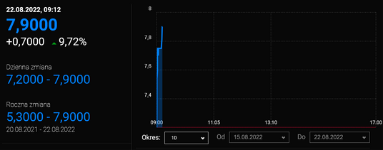 Okres przyjmowania zapisów wydłużono do 8 września. Pierwotnie miały się zakończyć 29 sierpnia. Podwyżka ceny w wezwaniu wywindowała notowania Gobarto do 7,90 zł.