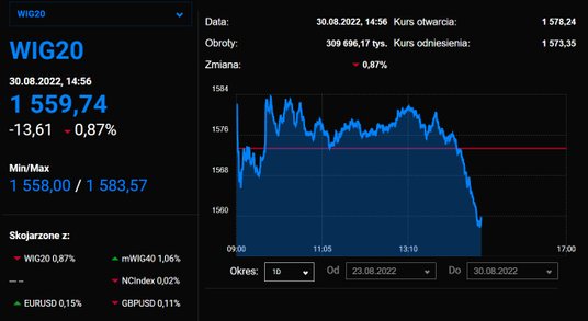 Wyraźne pogorszenie nastrojów na Wall Street. Indeksy tracą już ponad 1 proc. Nie pomaga to indeksom europejskim, nie wspominając już o WIG20. Ten spada o ponad 2 proc. Tej sesji byki już nie uratują.