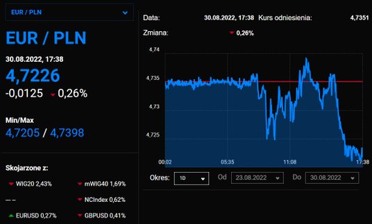 Jeśli szukać jakiś pozytywów po dzisiejszych wydarzeń, to można do nich zaliczyć notowania złotego. Nasza waluta nie tylko nie traciła, ale nawet zyskiwała na wartości. Wycena dolara i euro oscyluje obecnie w okolicach 4,72 zł. Czy to może być także sygnałem przesilenia w przypadku WIG20? Oby...