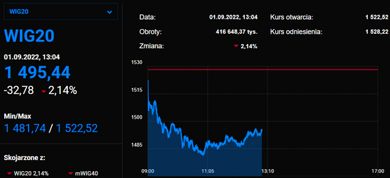 WIG20 poniżej 1500 pkt
