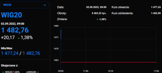 O poranku indeks największych firm zyskuje 1,1 proc. do 1 480 pkt.