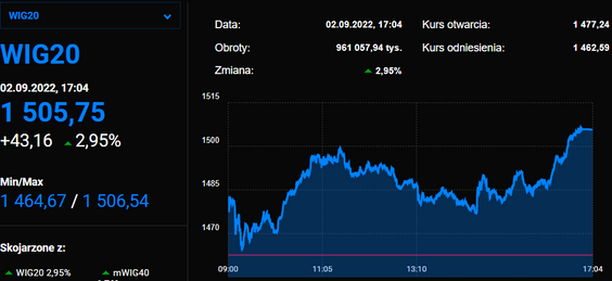 Indeks największych firm ostatecznie podskoczył powyżej psychologicznej bariery 1,5 tys. pkt. Pomogła w tym dobra dyspozycja m.in. banków.
