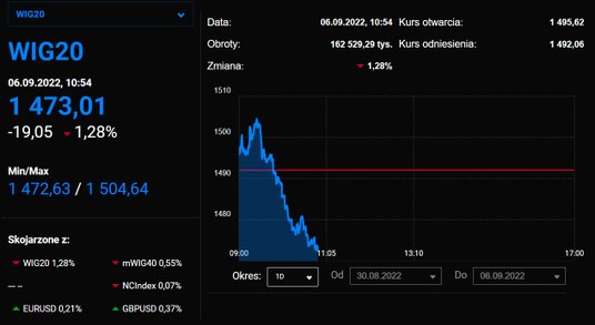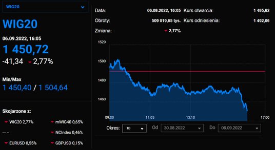 Kolejna ciężka sesja dla inwestorów w Warszawie. Rano WIG20 atakował jeszcze 1500 pkt, a dzień zakończył na poziomie 1452 pkt.