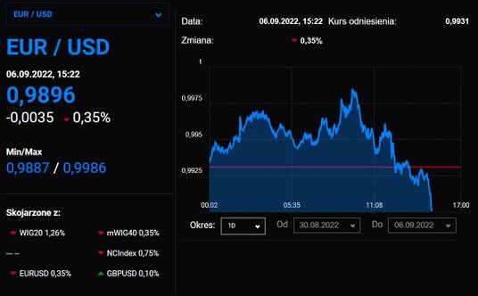 Dolar znów pokazuje moc. Główna para walutowa spada o około 0,4 proc. i jest już poniżej 0,99. Czy, tak jak wczoraj, będzie to tylko epizod czy jednak "zielony" będzie dalej się umacniał?