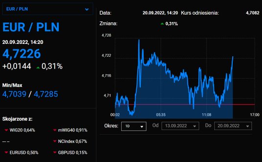 Euro drożeje dzisiaj o 0,3 proc., zaś dolar o 0,9 proc. w relacji do złotego. Nie pomaga spadek głównej pary walutowej w ostatnich minutach, a także dane makroekonomiczne które się dzisiaj ukazały. Mogą być one przesłanką do tego, aby RPP lada moment zakończyła cykl podwyżek stóp.