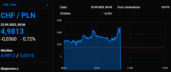 Szwajcarski Bank Narodowy podniósł główną stopę procentową z minus 0,25 proc. do plus 0,5 proc. To jej druga podwyżka w tym roku i zarazem druga od 2007 r. Główna stopa stała się dodatnia po raz pierwszy od 2011 r. Już wczoraj frank szwajcarski osiągnął najwyższy w historii poziom 5 zł, dzisiejsza decyzja może doprowadzić do kolejnego umocnienia się tamtejszej waluty.