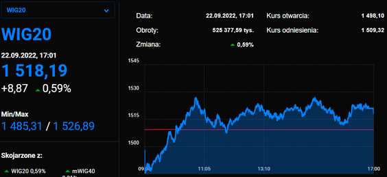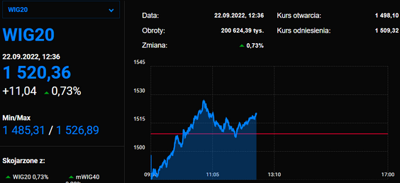 Po początkowych spadkach wywołanych decyzją Fedu o podwyżce stóp procentowych o 75 pkt bazowych, w Warszawie WIG20 zyskuje 0,7 proc. Z kolei niemiecki DAX czy francuski CAC spadają o 0,6 proc.