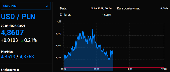 O godzinie 10 GUS poda wskaźnik ogólnego klimatu koniunktury gospodarczej we wrześniu. Z kolei o 13 Bank of England podejmie decyzję co do podwyżki stóp procentowych. Wczorajsza decyzja o podwyżkach stóp w USA wpłynęła na znaczne umocnienie się dolara, który teraz kosztuje niespełna 4,86 zł. Z powodu wspomnianej decyzji Fedu, o poranku zniżkować mają indeksy w Europie.