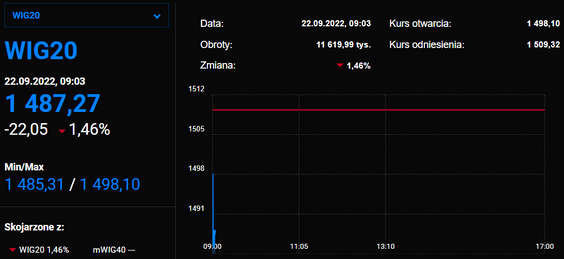 WIG20 w pierwszych minutach czwartkowej sesji spada o 1,3 proc. Podobnie sytuacja prezentuje się na innych europejskich parkietach, gdzie np. francuski CAC traci 1,6 proc.