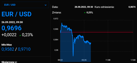 W poniedziałek rano za euro płacono nawet o 0,96 dolara, co jest najniższym poziomem ponad 20 lat. Słabość unijnej waluty to efekt obaw związanych z recesją będącą efektem trwającego kryzysu energetycznego wywołanego ograniczeniem dostaw rosyjskiego gazu do Europy.