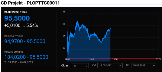 Akcje CD Projektu skutecznie opierają się negatywnym nastrojom na rynku zyskując w trakcie poniedziałkowej sesji ponad 5 proc. Inwestorów przekonały do spółki najnowsze wieści dotyczące „Cyberpunka” , który na fali serialu w serwisie Netflix wrócił do łask graczy. W efekcie liczba graczy na Steamie notuje w ostatnich dniach dynamiczne wzrosty.
