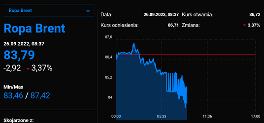 Notowania ropy naftowej i gazu w Europie weszły w solidną korektę, która już znacząco obniżyła ich ceny. Ropa jest już najtańsza od początku stycznia tego roku. Z kolei gaz ziemny w Europie od sierpniowego szczytu zaliczył kilkudziesięcioprocentowy spadek, ale jego ceny wciąż są wyraźnie powyżej poziomów sprzed rosyjskiej inwazji.