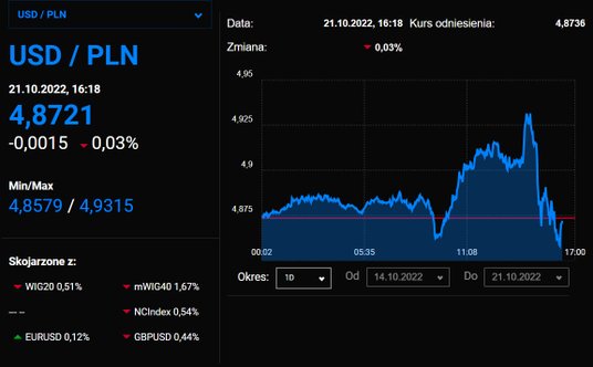Przecieki na temat tego, jakoby Fed w grudniu miał podnieść stopy procentowe już jedynie o 50 pkt bazowych pomogły rynkom i sprawiły też, że zaczął znów osłabiać się dolara. Para EUR/USD wróciła do wzrostów, a pomogło to także i złotemu. Dolar jest obecnie wyceniany na 4,87 zł, chociaż w ciągu dnia był już powyżej 4,90 zł.