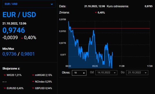 Główna para walutowa wciąż nie może doczekać się mocnego odbicia. Dzisiaj spada 0,5 proc. i niewykluczone, że znów testowany będzie poziom 0,97.