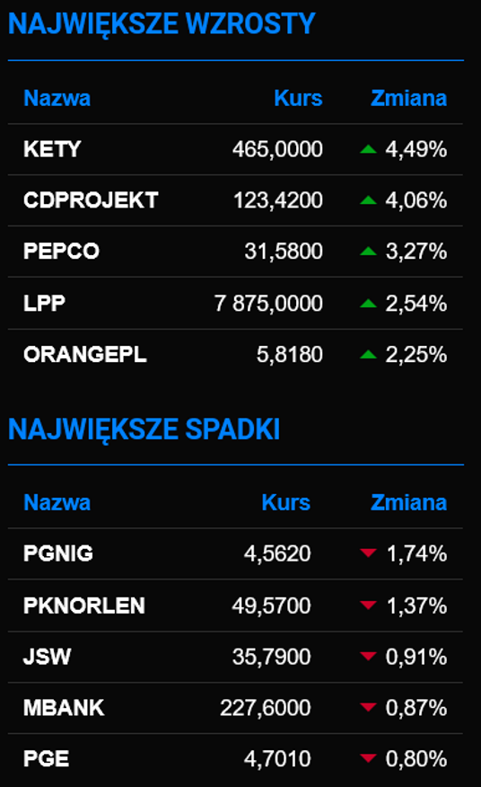 Indeksy w Warszawie powiększają przewagę