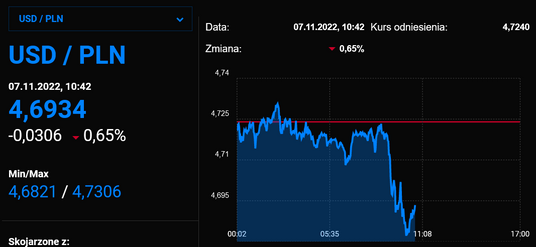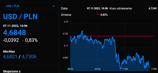 Z początkiem nowego tygodnia złoty wykorzystał słabość amerykańskiej waluty i umocniły się do niej. Za dolara trzeba płacić niecałe 4,69 zł, frank szwajcarski kosztuje ok. 4,73zł, a euro jest wyceniane po ok. 4,68 zł.