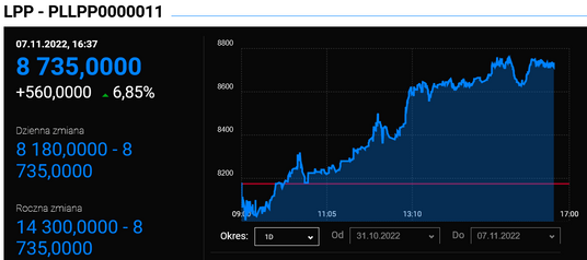 Akcje odzieżowego potentata zaliczają najbardziej udaną sesję od dłuższego czasu drożejąc o prawie 7 proc. W ostatnich tygodniach notowania charakteryzowały LPP wyróżniały się ponadprzeciętnie wysoką zmiennością.