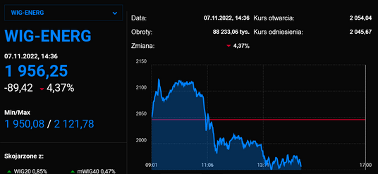 Spółki energetyczne znalazły się na celowniku sprzedających po wypowiedzi premiera Mateusza Morawieckiego o ograniczeniu przyszłorocznych zysku netto sektora do „poziomo 0 plus”. W efekcie sektorowy indeks WIG-Energia jest już ponad 4 proc. pod kreską. O prawie 9 proc. spada kurs Enei, ponad 7 proc. traci Tauron, a akcje PGE są prawie 5 proc. na minusie.