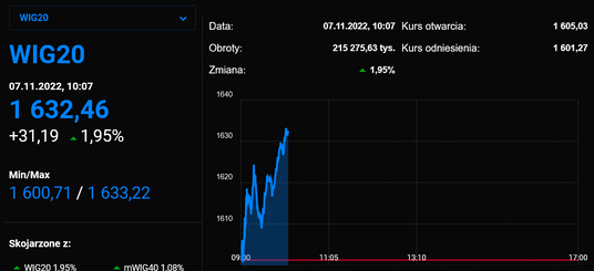 Koniec tygodnia przynosi wyraźne umocnienie polskich akcji i powrót WIG20 powyżej 1600 pkt. Rosną także ceny obligacji skarbowych (rentowności spadają) mimo „jastrzębiego” Fedu.