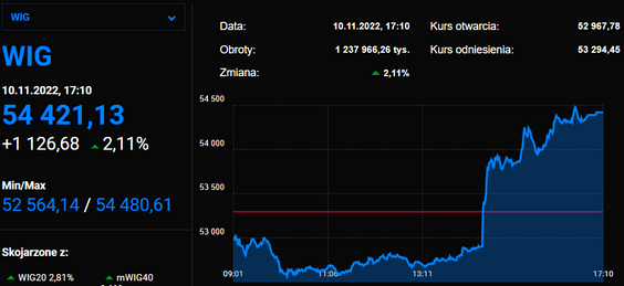 Indeksy S&P 500, Nasdaq oraz Dow Jones Industrial rosły na starcie czwartkowej sesji o odpowiednio 3,5 proc., 4,8 proc. i 2,4 proc. Inwestorzy liczą, że spadek inflacji względem września będzie sygnałem dla Fedu do ograniczenia podwyżek stóp procentowych.