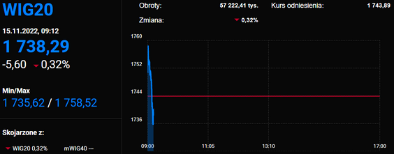 WIG20 w pierwszych minutach sesji traci 0,3 proc.