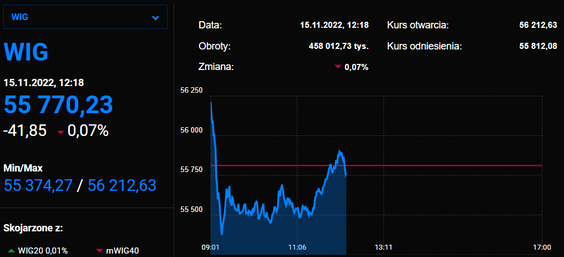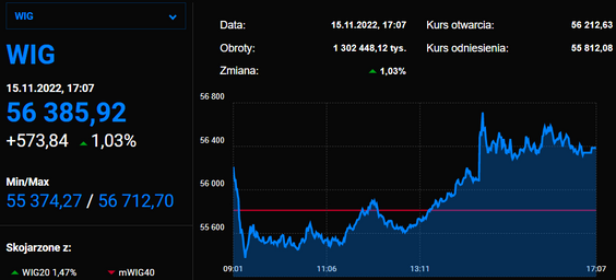 W październiku inflacja PPI sięgnęła 8 proc. wobec spodziewanych 8,3 proc. Z kolei bazowa wskaźnik zmniejszył się z 7,2 proc. do 6,7 proc. Tak korzystny odczyt zdeterminował byki do ataku. Warszawski indeks najbardziej płynnych firm zyskuje 1,4 proc.