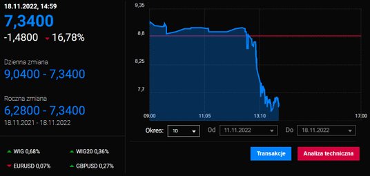 Akcje firmy Elektrotim tracą na wartości ponad 16 proc. Co ciekawe na razie brakuje informacji fundamentalnych, które uzasadniałyby ten ruch. To więc zwykła korekta czy jednak coś więcej?