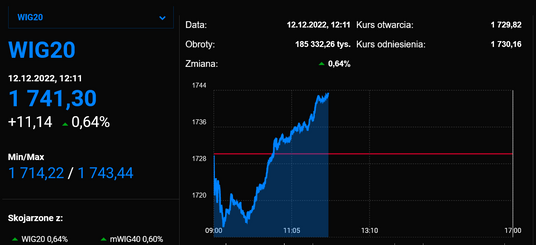 Główne indeksy nowojorskich giełd na poszły w górę o ponad 1 proc. na poniedziałkowej sesji, w przeddzień wyczekiwanej publikacji danych o listopadowej inflacji konsumpcyjnej w Stanach Zjednoczonych. Najlepiej wypadł Dow Jones, zyskując prawie 1,6 proc.
