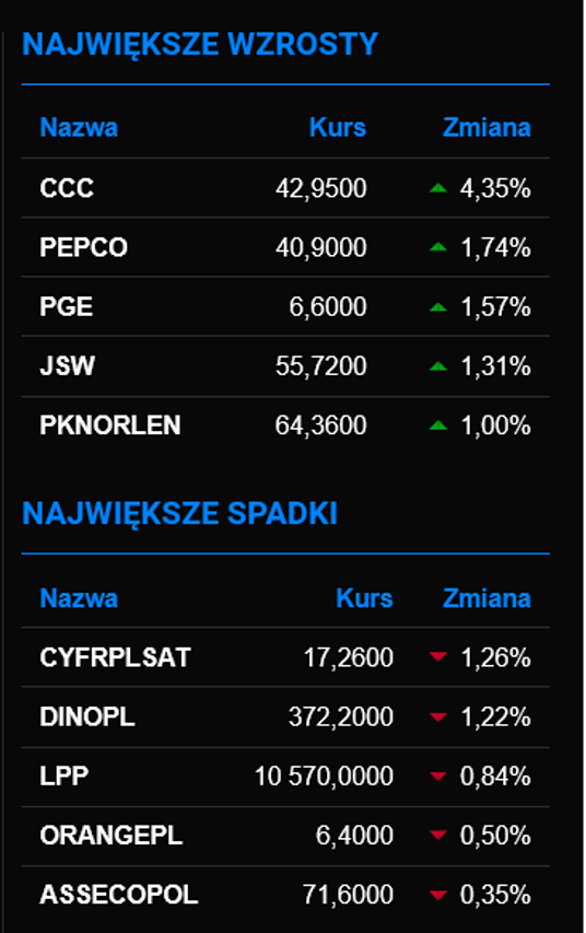 W segmencie największych spółek inicjatywa należy do kupujących, co przekłada się na ok.0,3 proc. zwyżki WIG20. Najbardziej rozchwytywane są akcje CCC, notując 4,5 proc. wzrostu. Na celowniku są także papiery PGE i JSW. Mimo mało obiecującego początku notowań do zwyżek podłączyły się akcje Allegro.