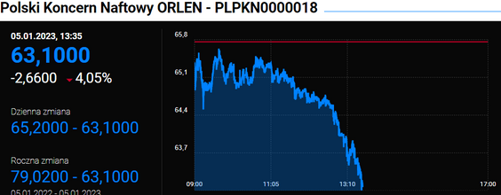Notowania koncernu paliwowego spadają po południu o ponad 4 proc. Przyczyną może być wszczęcie postępowania wyjaśniającego przez UOKiK dotyczącego sytuacji na rynku paliw.