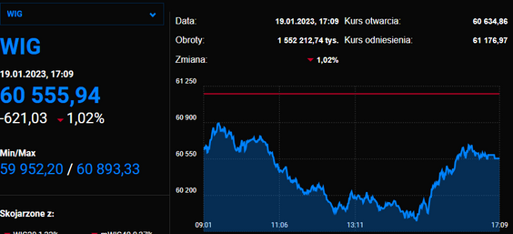 Indeks szerokiego rynku zakończył sesję spadkiem o 1 proc. Spośród największych indeksów najmocniej zniżkował WIG20, który stracił 1,2 proc. Nieco mniej osunął się indeks średnich firm, który w czwartkową sesję spadł o 0,4 proc. Indeks małych spółek stracił 1 proc. Kolejny raz dopisała aktywność inwestorów, o czym świadczą obroty sięgające niemal 1,6 mld zł.