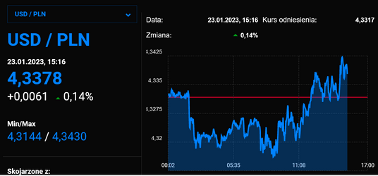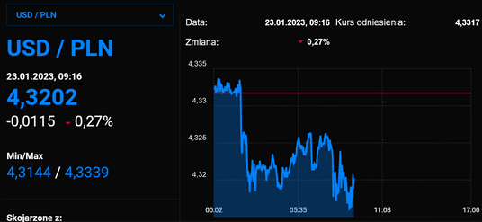Złoty zyskuje względem najważniejszych walut czemu sprzyjają czynniki globalne w postaci m. in. słabnącego dolara. Za euro inwestorzy płacą ok. 4,71 zł, zł, frank szwajcarski kosztuje nieco ponad 4,70 zł, a dolar ok. 4,32 zł.