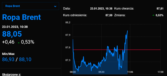 Baryłka ropy WTI notowanej na giełdzie NYMEX w Nowym Jorku zwyżkuje o prawie 0,5 proc.i kosztuje prawie 82 USD. Z kolei cena ropy Brent notowanej w Londynie po zwyżce o ponad 0,5 wynosi ok. 88 USD. Notowania surowca drożeją kolejny dzień z rzędu w nadziei na odbicie globalnego popytu na paliwa, w czym kluczową rolę odgrywają Chiny. - Sytuacja w Chinach to obecnie największa niewiadoma na rynku ropy naftowej, a jednocześnie kluczowy czynnik przekładający się na popyt na ropę, a co za tym idzie, na ceny tego surowca. Z jednej strony, dane makroekonomiczne w Chinach są słabe, co wskazuje na to, że ubiegłoroczne restrykcje pandemiczne mocno uderzyły w tamtejszą gospodarkę, tłumiąc popyt na wiele surowców. Jednak z drugiej strony, zniesienie tych restrykcji otworzyło drogę do istotnego wzrostu popytu na paliwa – i właśnie takiego scenariusza spodziewa się większość ekonomistów i analityków – wskazuje w komentarzu Dorota Sierakowska, analityk DM BOŚ.