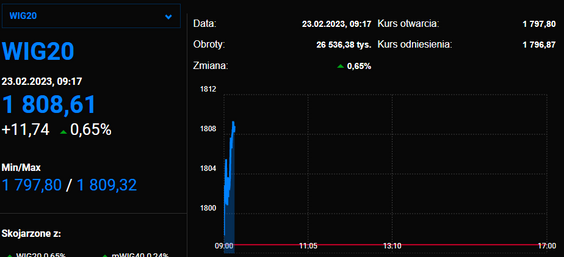 W pierwszych minutach sesji WIG20 zyskuje 0,7 proc., co przekłada się na wzrost szerokiego indeksu rynku o 0,4 proc.