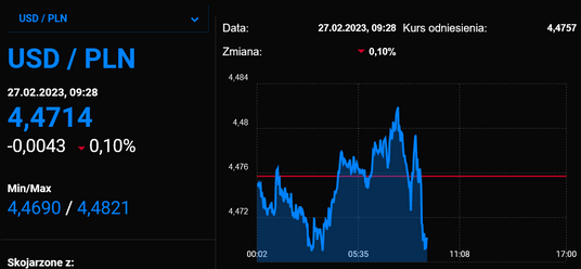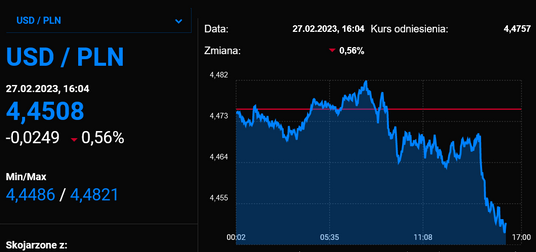 Na koniec poniedziałkowych notowań kurs dolara spadł do ok. 4,45 zł. Z kolei frank szwajcarski zniżkował do 4,75 zł, a euro do 4,71 zł. Wsparciem dla złotego okazały się przede wszystkim czynniki globalne w postaci słabnącego dolara, który z początkiem tygodnia znów osłabiał względem większości walut.