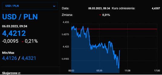 Wsparciem dla złotego okazały się czynniki globalne w postaci słabnącego dolara, który z początkiem tygodnia znów tracił względem większości walut. Na koniec poniedziałkowych notowań za amerykańską walutę spadł płacono ok. 4,40 zł, frank szwajcarski kosztował nieco ponad 4,71 zł, a euro ok. 4,70 zł.