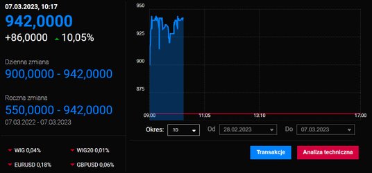 Blisko 10 proc. zyskują na wartości akcje Benefit Systems. Pomogły im szacunkowo wyniki za IV kwartał, które okazały się lepsze od oczekiwań. Spółka szacuje, że miała w IV kw. 2022 roku 562,9 mln zł przychodów i 136 mln zł EBITDA.