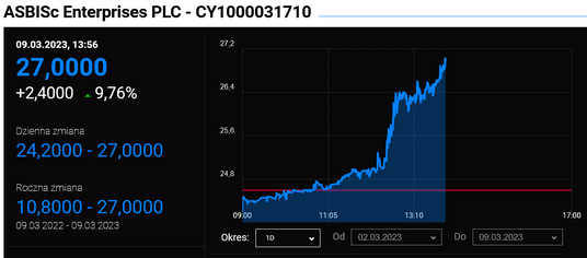 Kurs Asbisu rośnie o prawie 10 proc. systematycznie powiększając swoją przewagę od startu czwartkowych notowań. Zwyżce towarzyszą bardzo wysokie obroty przekraczające już ponad 12 mln zł. Paliwa do dzisiejszych wzrostów dostarczyła najnowsza rekomendacja Argusa, który wartość godziwą akcji spółki oszacował na 71 zł, co oznacza aż 170 proc. przebitki względem ceny płaconej na giełdzie.