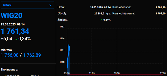 W pierwszych minutach środowej sesji WIG20 zyskuje 0,3 proc., minimalnie zyskuje też mWIG40. Tymczasem francuski CAC40 spada o 0,3 proc.