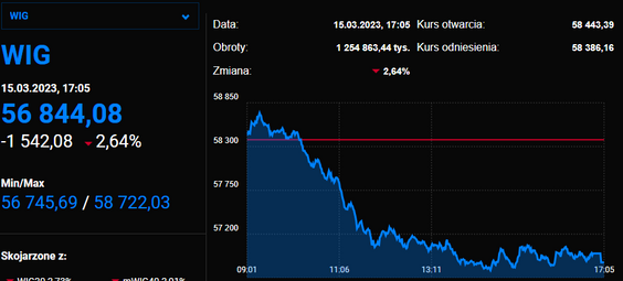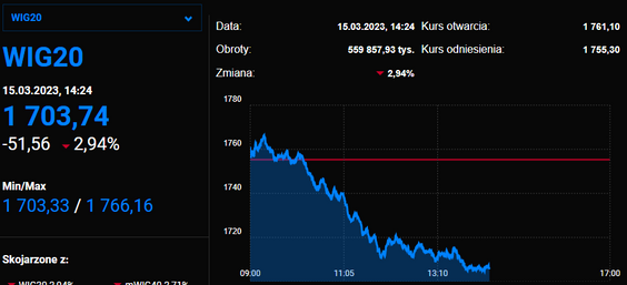Ostatecznie indeks szerokiego rynku spadł o 2,6 proc. WIG20 osunął się o 2,7 proc. a mWIG40 - o 2,9 proc. Nieco lepiej wypadły firmy trzeciej linii, których indeks spadł o 2,2 proc. To wszystko przy wysokich obrotach, których wartość sięgnęła niemal 1,3 mld zł. - Dzisiejsza siła dolara oraz spadki cen surowców mają jeden wspólny mianownik – obawy o recesję. Z jednej strony pojawiły się obawy o sytuację Credit Suisse i dalsze losy nie tylko banku, ale ogólnie sektora bankowego. Z drugiej wczorajsze prognozy OPEC, które mówią o niewielkim wzroście popytu na ropę w tym roku, poprawione dzisiejszymi spadkami cen miedzi powodują, że powróciły obawy inwestorów o recesję. Co ciekawe, nawet dość dobre dane dotyczące inflacji PPI w USA, które mogłyby przemawiać za potencjalnie niższymi podwyżkami stóp procentowych przez Fed, nie uspokajają inwestorów - podsumował dla "Parkietu" Marek Rogalski, analityk DM BOŚ.