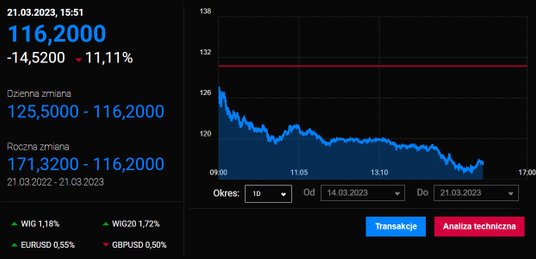 Wejście do gry kapitału amerykańskiego przyspieszyło wyprzedaż akcji CD Projekt. Rano traciły one około 5 proc., teraz mowa już o ponad 11 - proc. spadku. Stoi za tym odpis na ponad 40 mln zł.