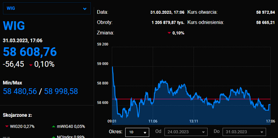 Indeks szerokiego rynku stracił 0,1 proc., a najmocniej przyczynił się do tego spadający o 0,3 proc. WIG20. Nieco lepiej sytuacja wyglądała wśród spółek drugiej i trzeciej linii. mWIG40 zyskał 0,1 proc., a sWIG80 - 0,6 proc. Wartość obrotów wyniosła 1,2 mld zł.
