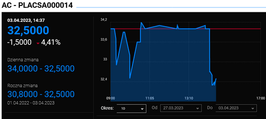 Według wstępnych danych przychody ze sprzedaży AC w I kwartale 2023 r. wyniosły 66,2 mln zł i były o 6,5 proc. wyższe niż w analogicznym okresie poprzedniego roku. Rynek najwyraźniej jest rozczarowany, bo chwilę po publikacji kurs spółki zjechał w dół o ponad 4 proc.