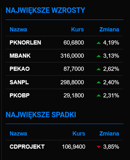 Krajowe indeksy powiększają przewagę. Orlen liderem
