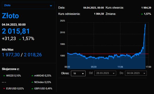 Kolejne osłabienia dolara na rynku walutowym i szybka reakcja też na rynku metali szlachetnych. Złoto przebiło się przez poziom 2000 USD. Jego cena rośnie już o prawie 2 proc. Zyskuje także srebro. W tym przypadku mamy do czynienia z 2,5 - proc. wzrostem.