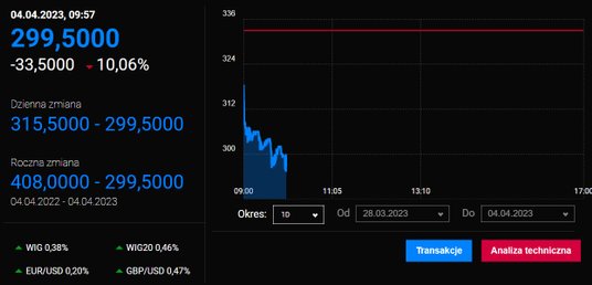 Informacja o tym, że jeden z akcjonariuszy chce sprzedać do 15 proc. akcji w procesie ABB zdecydowanie nie pomaga dzisiaj notowaniom firmy. Traci ona już ponad 10 proc.
