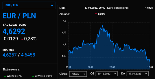Mimo wyraźnego umocnienia dolara polska waluta wcale nie zamierzała łatwo oddawać pola, ale ostatecznie musiała uznać wyższość amerykańskiej waluty. Za dolara trzeba płacić prawie 4,24 zł, a euro kosztuje poniżej 4,63 zł, co jest najniższym poziomem od czerwca 2022 r.