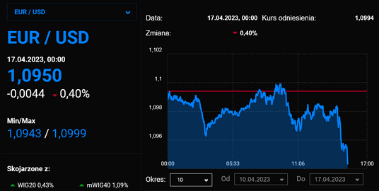 Amerykańska waluta dostała kolejne mocne wsparcie z gospodarki. Tym razem są to wyraźnie lepsze od oczekiwań dane o indeksie koniunktury w przemyśle w Nowym Jorku, który w kwietniu osiągnął najwyższy poziom od połowy ubiegłego roku. W odpowiedzi kurs euro do dolara zjechał do poziomu 1,095.